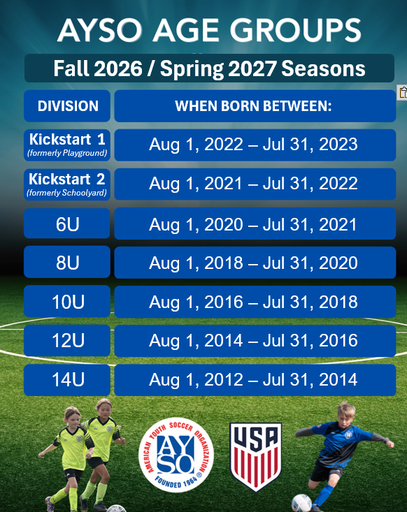 The fall season starts in early August and runs through October, with no activities scheduled over Labor Day weekend or DCSD fall break. The season may extend into early November for 10U and above for regional AYSO tournaments.